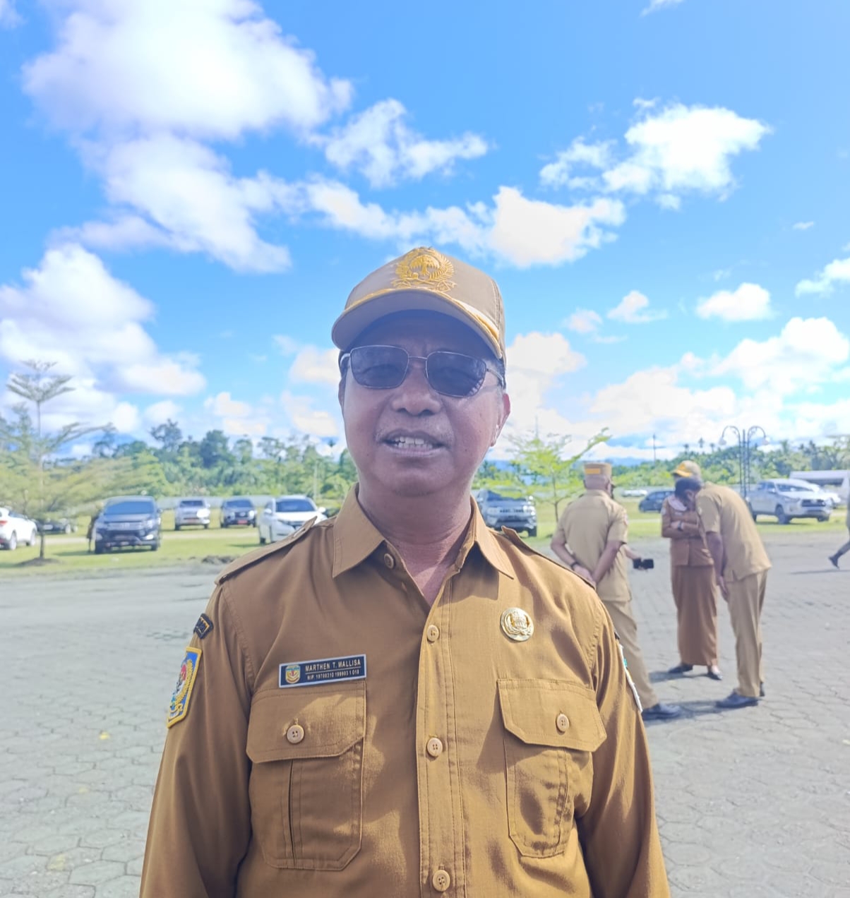 Capt: Kepala Badan Pengelola Keuangan dan Aset Daerah (BPKAD) Kabupaten Mimika, Marthen Malissa, usai diwawancarai wartawan Nemangkawi Pos. Foto: Stendy.