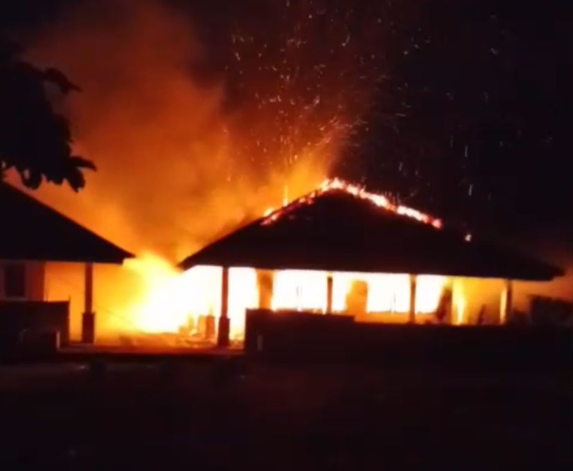 Capt: Kebakaran dua asrama putra di SMA Sentra Pendidikan Timika, Selasa malam (21/10/2025) | foto: warga/red