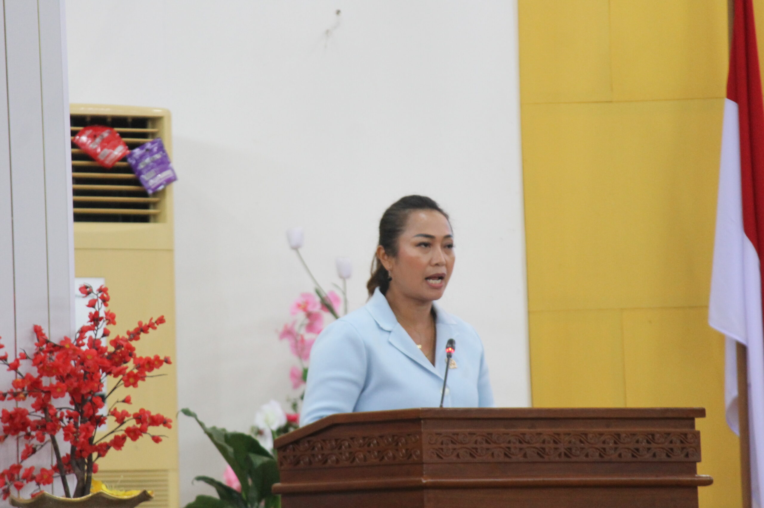 Capt: Ketua Fraksi Partai Demokrat DPRK Mimika, Dessy Putrika Ross Rante, saat menyampaikan pendapat akhir pada Rapat Paripurna IV Masa Sidang III. Foto: (Stendy/ Nemangkawi Pos)