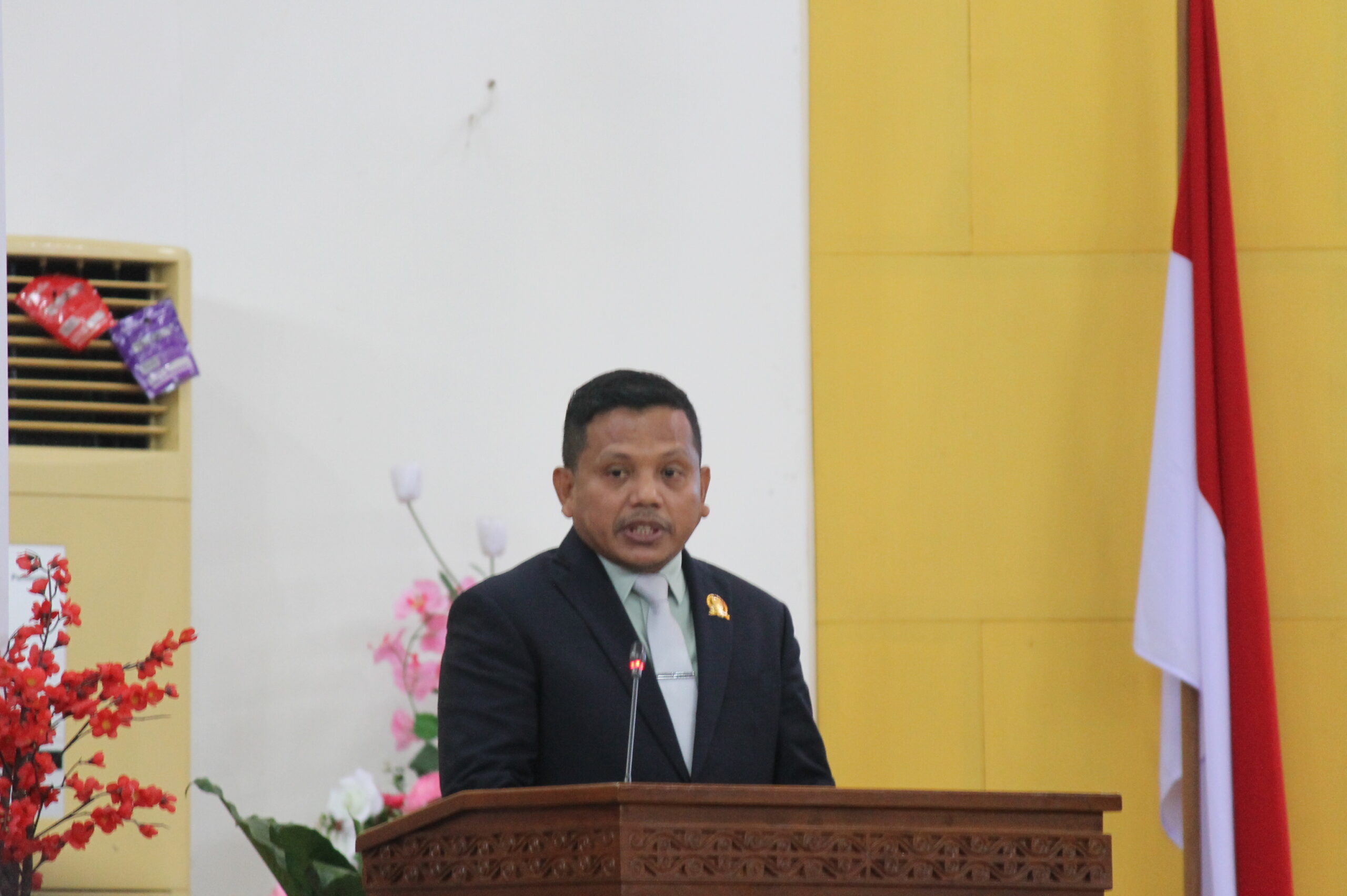 Capt : Ketua Fraksi Rakyat Bersatu DPRK Mimika, Herman Gafur, saat menyampaikan pendapat akhir fraksi pada Paripurna IV Masa Sidang III RAPBD Mimika Tahun Anggaran 2026, Kamis (27/11/2025). Foto: Stendy / Nemangkawi Pos.