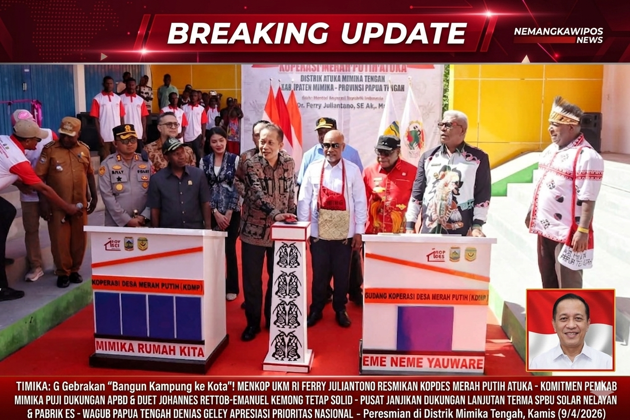 TIMIKA, Nemangkawipos.com – Visi besar “Bangun Kampung ke Kota” yang diusung Pemerintah Kabupaten Mimika terus menunjukkan progres nyata. Langkah strategis penguatan ekonomi pesisir ditandai dengan peresmian Koperasi Desa (Kopdes) Merah Putih di Kampung Atuka, Distrik Mimika Tengah, Kamis (9/4/2026).