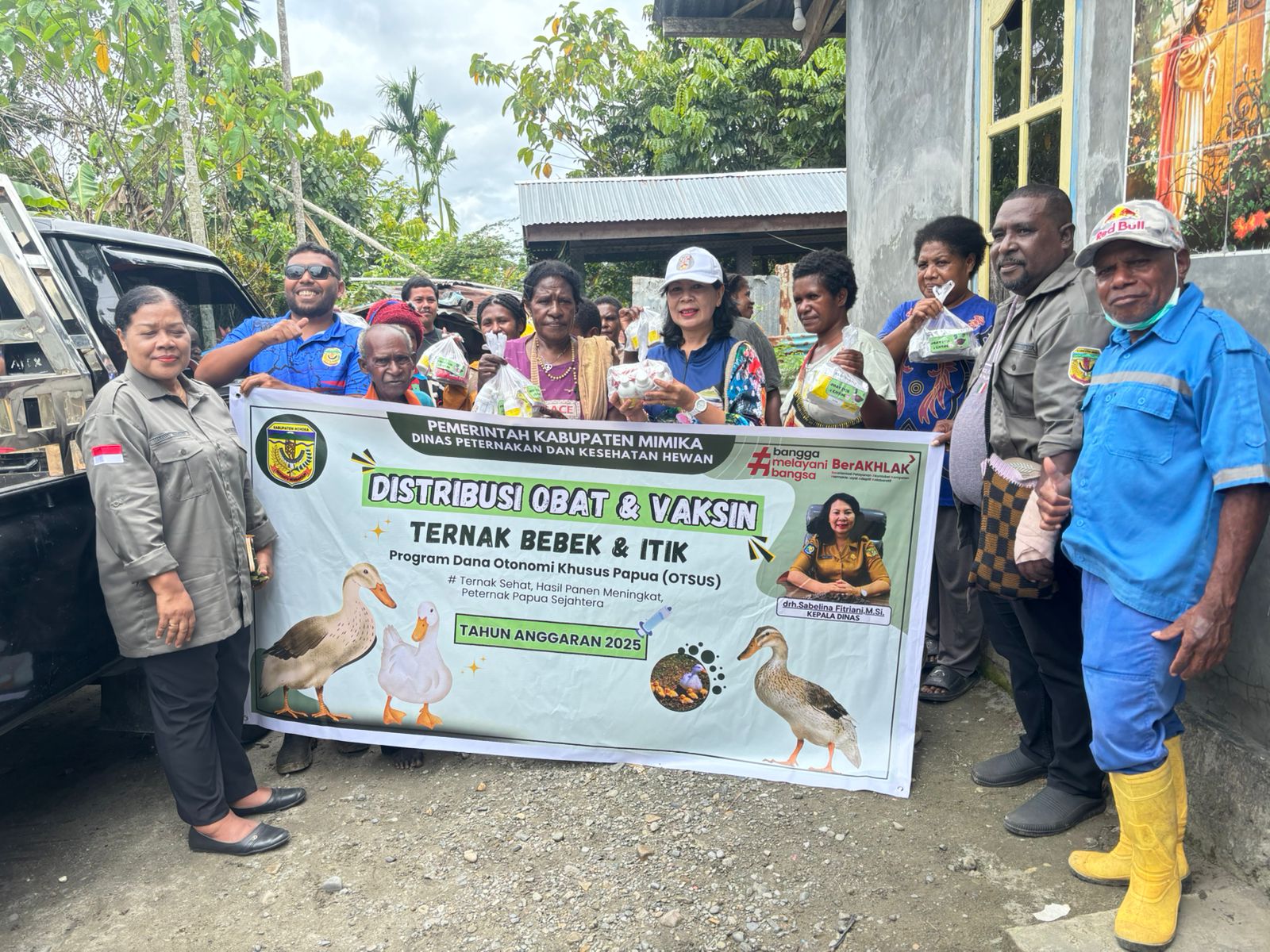 Sebanyak 1.600 bibit itik diserahkan kepada 138 Kepala Keluarga (KK) di Distrik Wania dan Agimuga, Jumat (26/9/2025).