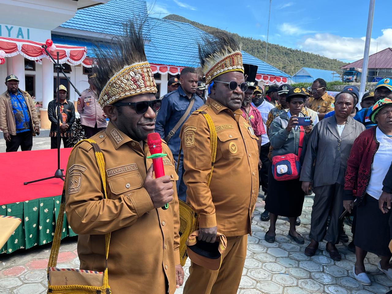 Wakil Bupati, Sekretaris Daerah, Kapolres, Dandim, para kepala OPD, dan pimpinan organisasi masyarat turut hadir dalam upacara yang digagas sebagai bentuk syukur pada tahun pertama kepemimpinan Bupati Deiyai, Melkianus Mote.