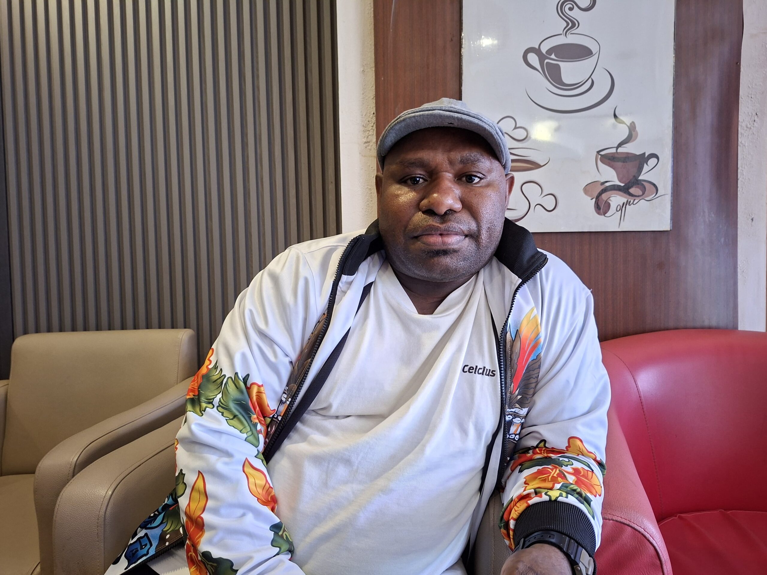 Capt: Direktur Eksekutif Kadin Papua Tengah, Albertus Keiya, saat diwawancarai pada Minggu (16/11/2025) di Hotel Grand Tembaga. Foto: Stendy.