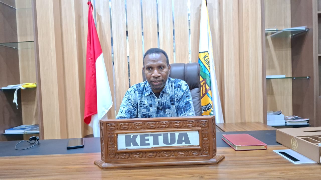 Capt : Ketua Dewan Perwakilan Rakyat Kabupaten (DPRK) Mimika, Primus Natikapereyau, saat diwawancarai wartawan Nemangkawipos.com. Foto: Stendy
