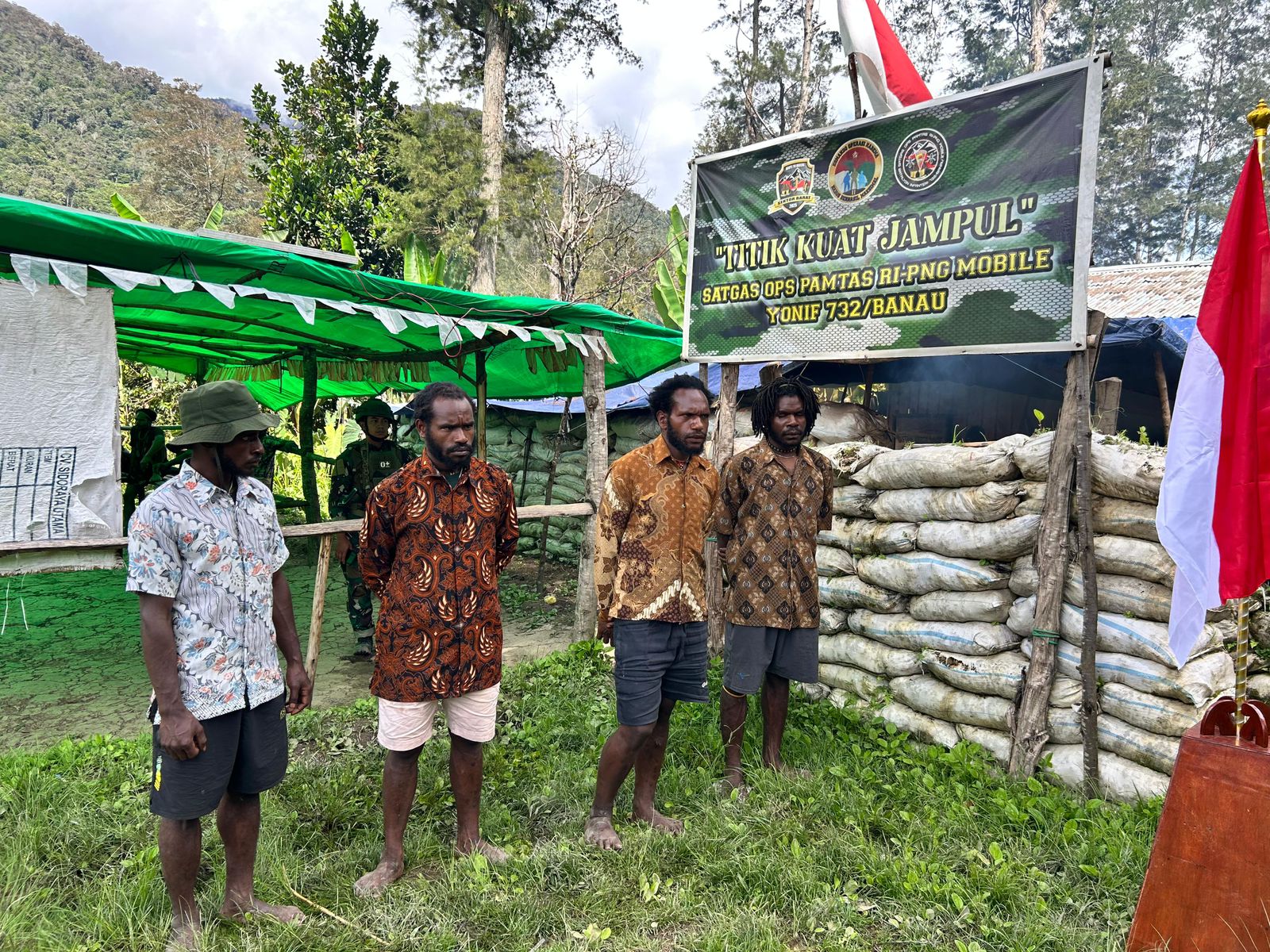 Kelima pemuda tersebut masing-masing Damal Kum alias Oten (19), Iyan Uamang (26), Maikel Uamang (14), Julian Wandagau (18), dan Eten Uamang (24). Mereka mendatangi Titik Kuat Jampul Satgas Yonif 732/Banau dengan didampingi Kepala Suku Kampung Jampul, Kum Uamang, sebagai bentuk dukungan masyarakat adat.