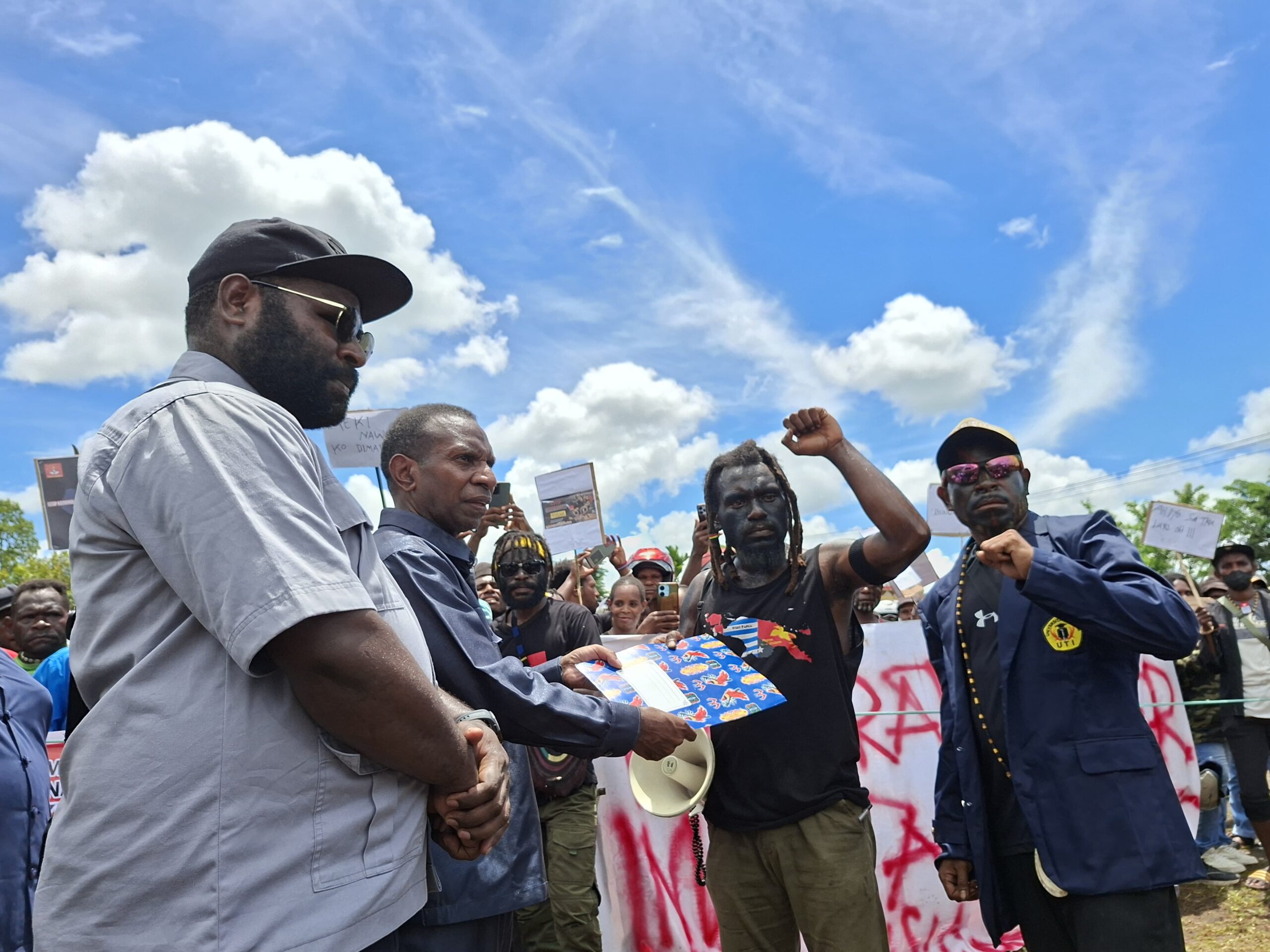 “Kami melihat hari ini, di atas tanah Papua terjadi krisis kemanusiaan — baik di bidang ekonomi, kesehatan, maupun pendidikan. Angka kematian meningkat, dan kami meminta negara untuk melihat persoalan kemanusiaan ini dengan serius,” tegas Freedom.
