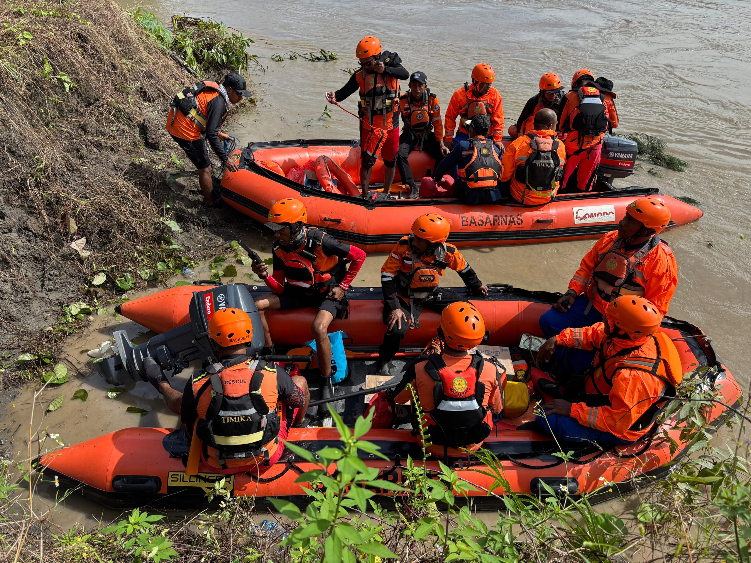 Pencarian melibatkan personel SAR Timika, TNI AD, Polsek Kuala Kencana, Pol Airud, PT Freeport Indonesia, relawan, keluarga, dan masyarakat setempat.
