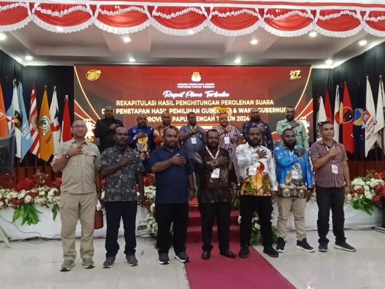 TIMIKA, nemangkawipos.com – Komisi Pemilihan Umum (KPU) Mimika, Provinsi Papua Tengah, telah memplenokan hasil perolehan suara untuk Calon Gubernur dan Wakil Gubernur Papua Tengah, serta Calon Bupati dan Wakil Bupati Mimika, di Distrik Tembagapura. Pleno tersebut berlangsung di GOR Futsal Timika pada Minggu (8/12/2024).