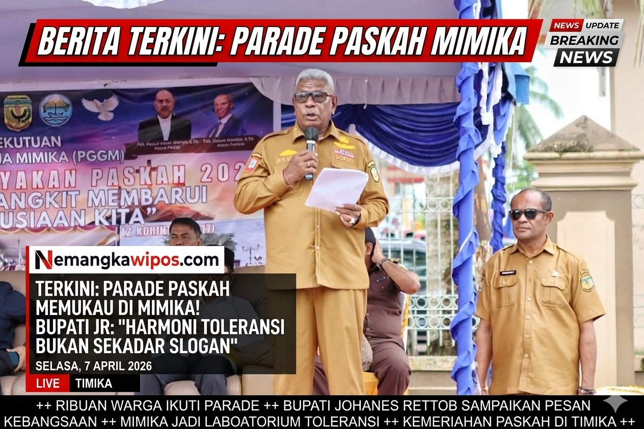 TIMIKA, Nemangkawipos.com – Kabupaten Mimika kembali menegaskan posisinya sebagai miniatur keberagaman Indonesia. Parade Paskah yang digelar pada Selasa (7/4/2026) tidak hanya menjadi perayaan iman umat Kristiani, tetapi juga menjelma sebagai ruang refleksi spiritual sekaligus penguat kohesi sosial di tengah masyarakat yang majemuk.
